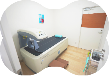 全身骨密度測定装置です。大学病院でも使われているシステムで従来では別々にスキャンしていた腰椎と大腿骨を一回のスキャンで測定可能です。それにより検査時間の短縮が可能で背中の痛い方などにも負担が少なく検査できます。