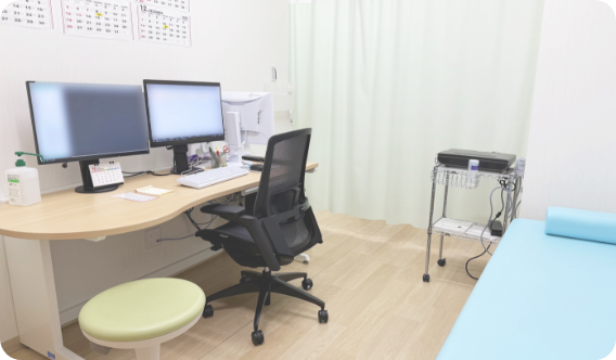 当院では超音波を3台導入しております。診察室に2台、リハビリ室に1台設置しているため、診察時に同時に検査を行うことが可能です。