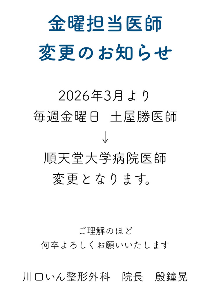 金曜担当医師 変更のお知らせ